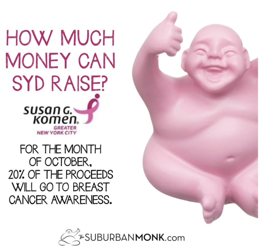 I am teaming up with Syd this month on this special mission to see how much money Syd can raise. In October, we’re giving 20% of each sale to support the Susan G. Komen Center of Greater NY, to help fight breast cancer.